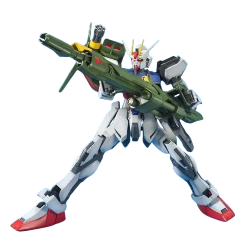 Le « Gundam Strike Launcher » n’est pas une unité unique, mais une référence au Strike Gundam (GAT-X105) équipé de son module d’armement Launcher Striker. Cette combinaison, appelée « GAT-X105+AQM/E-X03 Launcher », est utilisée principalement par le pilote Mu La Flaga. L’histoire se déroule dans le contexte de la guerre entre la Terre et l’espace, au sein de l’univers de Mobile Suit Gundam SEED.