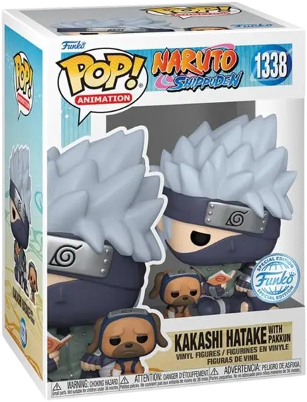 La figurine Funko Pop! Animation: Naruto Shippuden – Kakashi Hatake avec Pakkun #1338 est une édition spéciale exclusive sortie en 2023, qui commémore le partenariat emblématique entre le ninja copieur et son plus petit chien ninja.