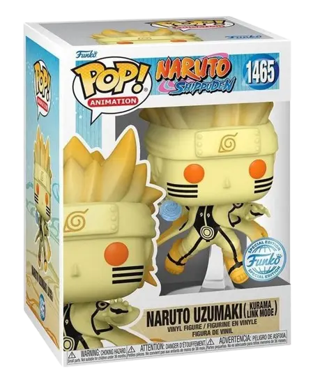 La figurine Funko Pop! Animation: Naruto Shippuden – Naruto Uzumaki (mode lien Kurama) #1465 est une édition spéciale exclusive, sortie en octobre 2023 aux États-Unis, qui représente le protagoniste dans une de ses transformations les plus puissantes.