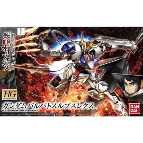 Le Gundam Barbatos Lupus Rex est l’évolution finale du Gundam Barbatos piloté par Mikazuki Augus dans la deuxième saison de Mobile Suit Gundam: Iron-Blooded Orphans, conçu pour refléter son style de combat brutal et sa synchronisation avancée avec le système Alaya-Vijnana. Le kit modèle HG 1/144 Gundam Barbatos Lupus Rex est une reproduction de cette machine emblématique.