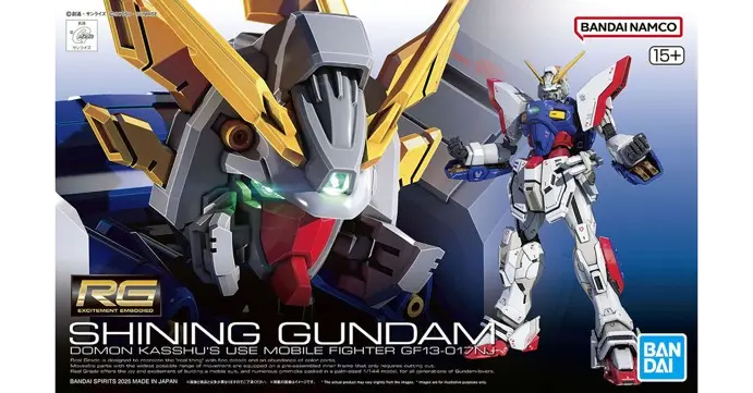 Le kit RG du Shining Gundam est sorti en juin 2025. Il a été développé dans la foulée de l’excellent RG God Gundam (sorti en août 2022), inversant l’ordre chronologique de la série animée.