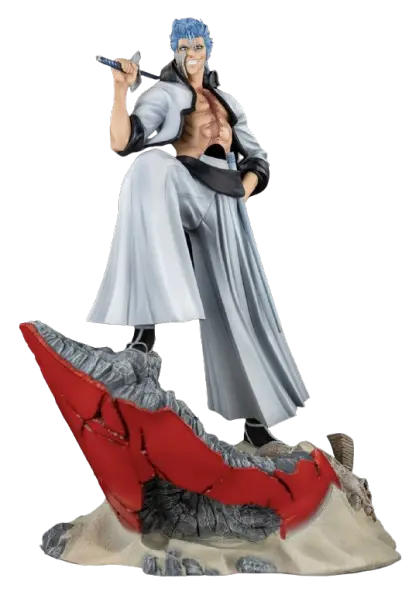 Nous sommes très fiers de vous présenter notre première réalisation dédiée à Bleach, Grimmjow Jaggerjack. 6e Espada et méchant emblématique de la série, le voici dans sa pose si caractéristique lors de son deuxième duel face à Ichigo. Toute première statue de notre gamme (échelle 1/6) visant à se recentrer sur l’essence des personnages et des moments-clés, Grimmjow est représenté sous sa forme d’Arrancar.