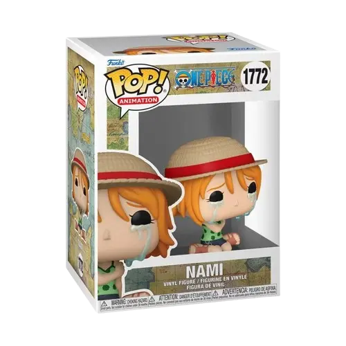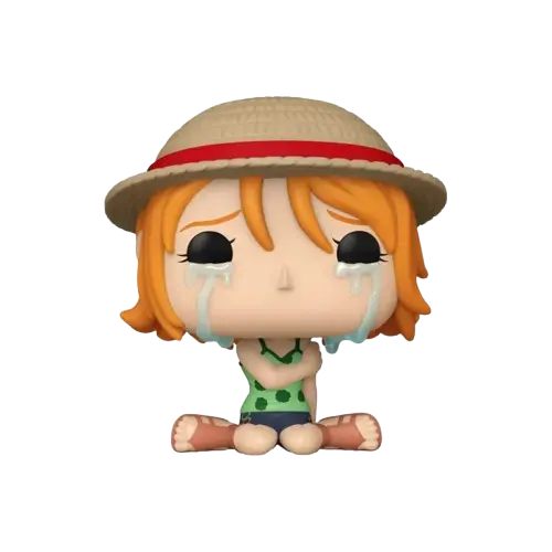 - Design : Cette Pop! capture Nami dans une pose qui est souvent décrite comme « pleurante » ou émotive, faisant référence à l’un des moments les plus poignants de la série où, désespérée par la tyrannie d’Arlong sur son village natal, elle demande l’aide de Luffy. Ce design spécifique, avec un visage expressif, se distingue des autres figurines Funko Pop! et est très apprécié pour sa rareté émotionnelle.