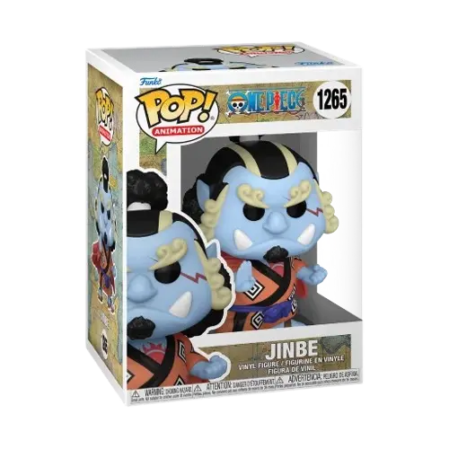 La figurine Funko Pop! Animation: One Piece – Jinbe #1265 est sortie en mars 2023. Elle représente le Vison homme-poisson et membre des Pirates du Chapeau de paille dans sa tenue standard, et inclut une variante « Chase » très recherchée.