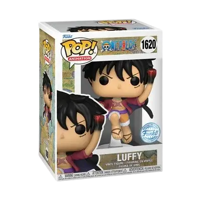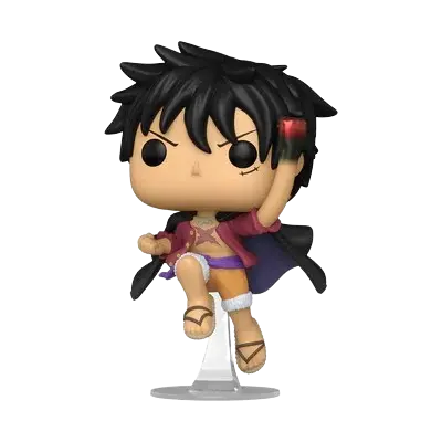 - Personnage et action : Cette Pop! capture Monkey D. Luffy, le capitaine intrépide des Pirates du Chapeau de paille, en plein milieu d’un saut ou d’une attaque, se préparant à délivrer un coup de poing. Le design est inspiré de l’arc narratif du Pays des Wa (Wano Kuni), où il porte parfois son alias « Luffytaro ».