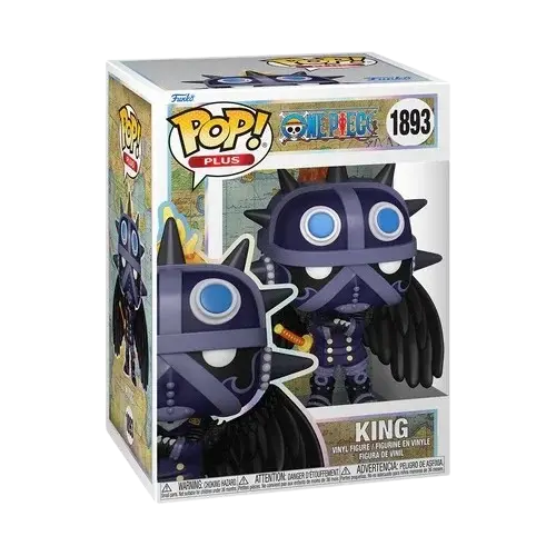 La figurine Funko Pop! Animation: One Piece – King #1893 représente l’une des trois Calamités de l’équipage de Kaido et est une version standard, largement disponible chez les détaillants avec une date de sortie estimée en 2024 ou début 2025.