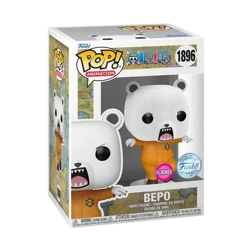 La figurine Funko Pop! Animation: One Piece – Bepo #1896 représente le Vison ours polaire, membre clé de l’équipage du Heart Pirates, et est une édition exclusive « flocked » (velours) sortie vers début 2024, avec une date de sortie officielle estimée autour de février 2025.