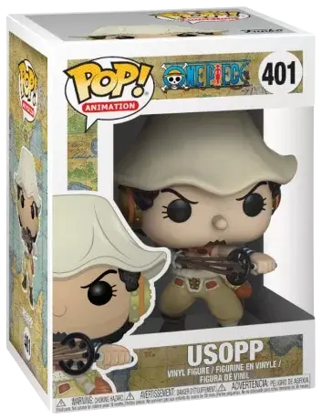 Funko Pop! Animation: One Piece – Usopp #401 représente le tireur d’élite de l’équipage du Chapeau de paille et est sortie initialement en septembre/octobre 2018, dans le cadre de la troisième série de figurines One Piece de Funko.