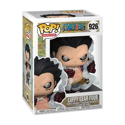 La figurine Funko Pop! Animation: One Piece – Luffy Gear Four (Metallic) #926 est une édition spéciale exclusive avec une finition métallique, sortie initialement en avril 2022 chez certains détaillants et présentée lors de la Funko Fair 2021.