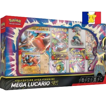 La Collection avec figurine Méga-Lucario-ex du JCC Pokémon contient :